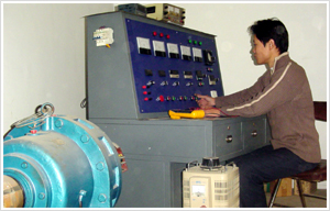 節(jié)能制動器創(chuàng)始人張家政先生(左一)在北京起重運(yùn)輸機(jī)械研究所實(shí)驗(yàn)臺上進(jìn)行檢測